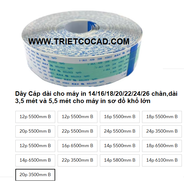 Dây cáp truyền tín hiệu,Dây Cáp dài cho máy in 14/16/18/20/22/24/26 chân,dài 3,5 mét và 5,5 mét cho máy in khổ lớn ,máy in sơ đồ khổ lớn.